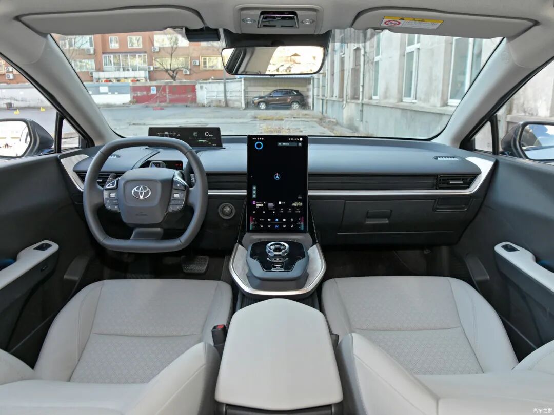设计够大胆前卫,并且当下流行的元素,像贯穿式前后灯带、悬浮式车顶、隐藏式门把手它都有。定位中型车,尺寸上略小于比亚迪海豹。朴实的内饰风格太丰田了!一台近20万的车,一丝豪华感都没有,四边形的方向盘更是一言难尽。不过这块大屏倒是值得称赞,比亚迪对其进行了魔改。