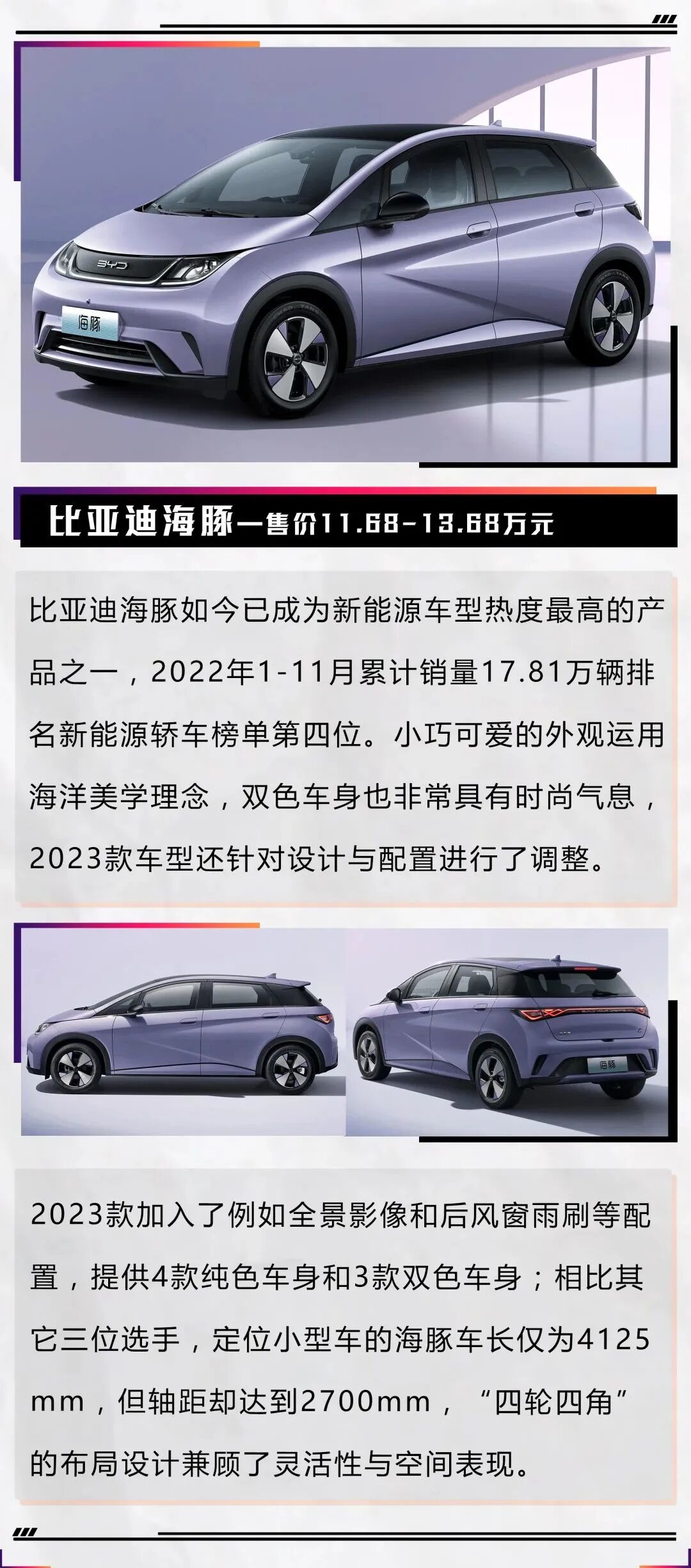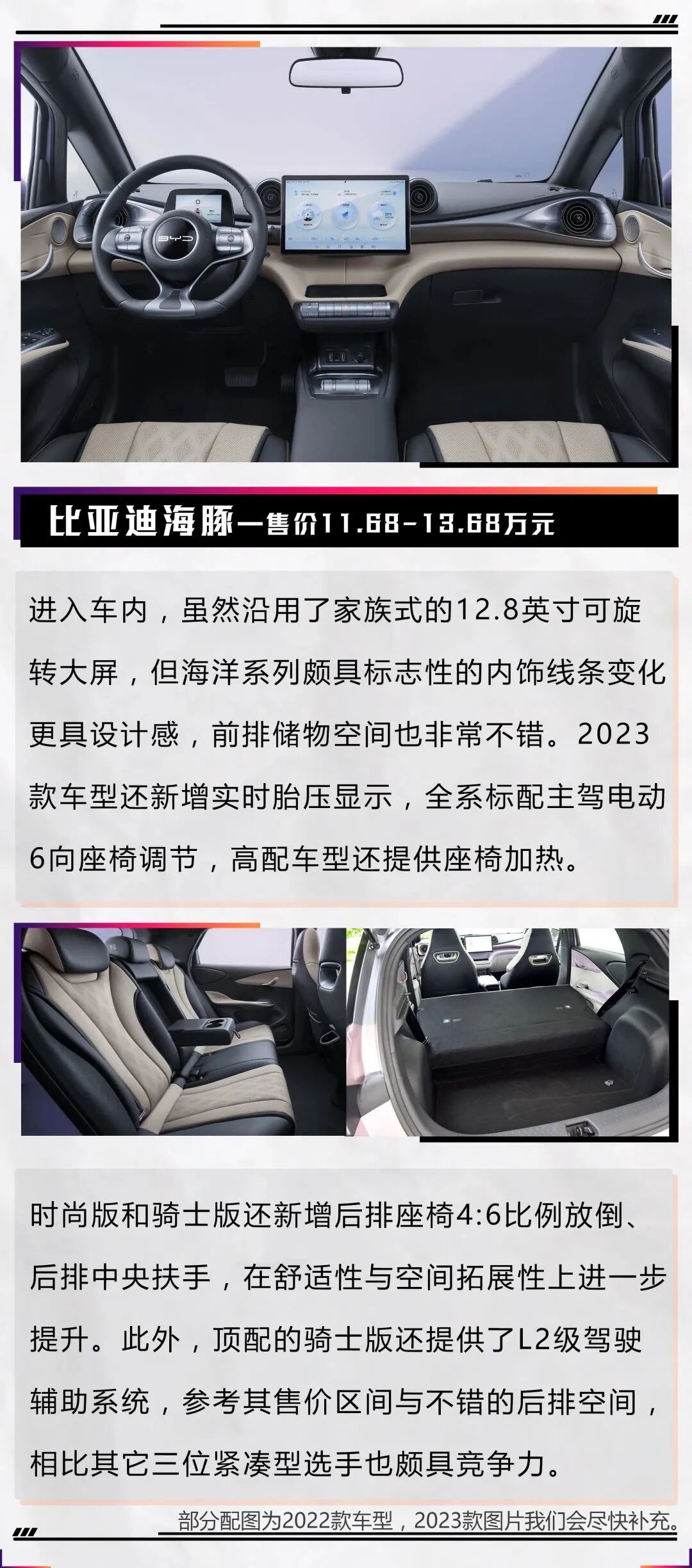 悬架配置上,海豚采用前麦弗逊式独立悬架/后扭力梁式非独立悬架;两套动力版本可以应付不同驾驶需求的消费者,如果只是代步通勤,低功率版本已经足够在拥堵的城市道路中提供敏捷的动力。
