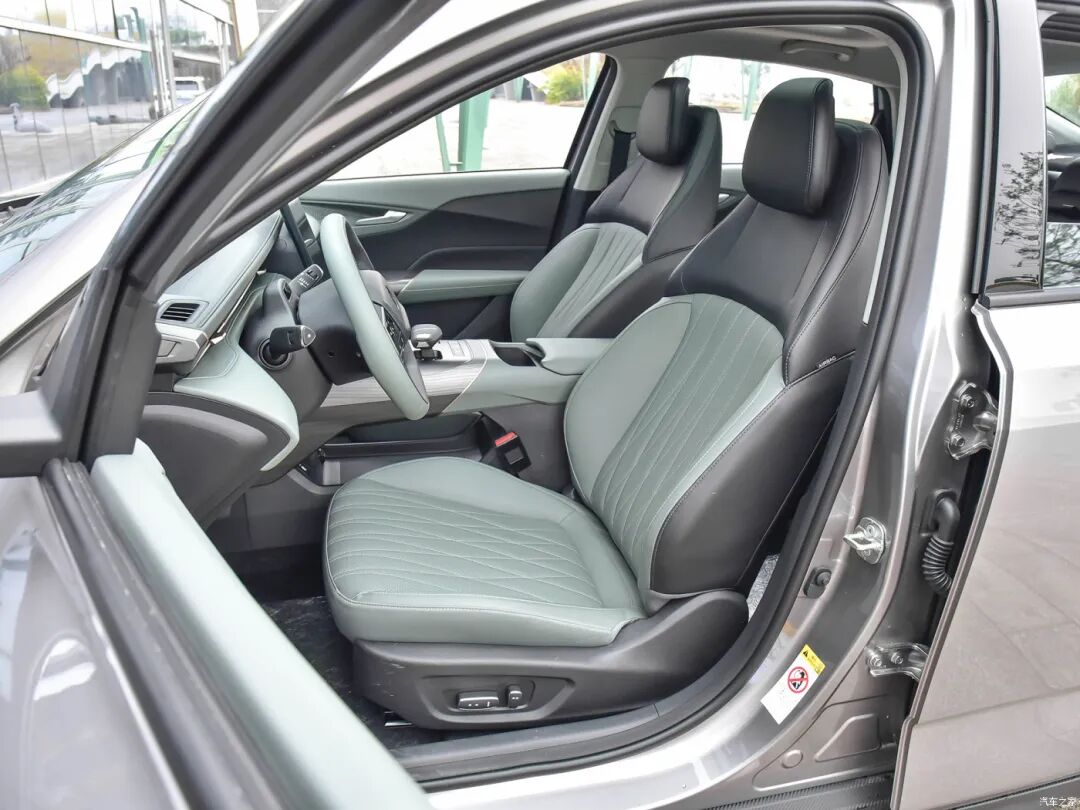 新车座椅采用双色皮质包裹,缝线勾勒出菱形纹理,带来出色质感。前排座椅坐垫够长,对腿部承托到位,而且主副驾驶位置均采用电动调节。
