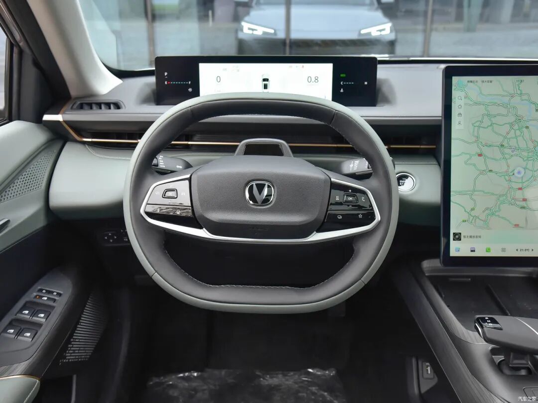 长安逸达的内饰设计拥有极强的简约气息,中控台视觉效果比较纤薄,再加上横贯左右的空调出风口,使车内视觉感受更加敞亮。全液晶仪表和中控大屏都没有缺席,出风口的金色装饰对提升质感大有裨益。