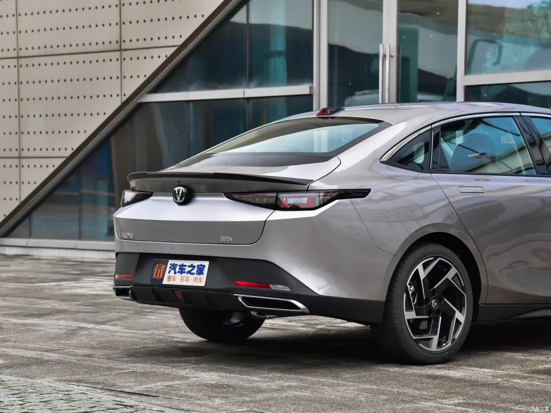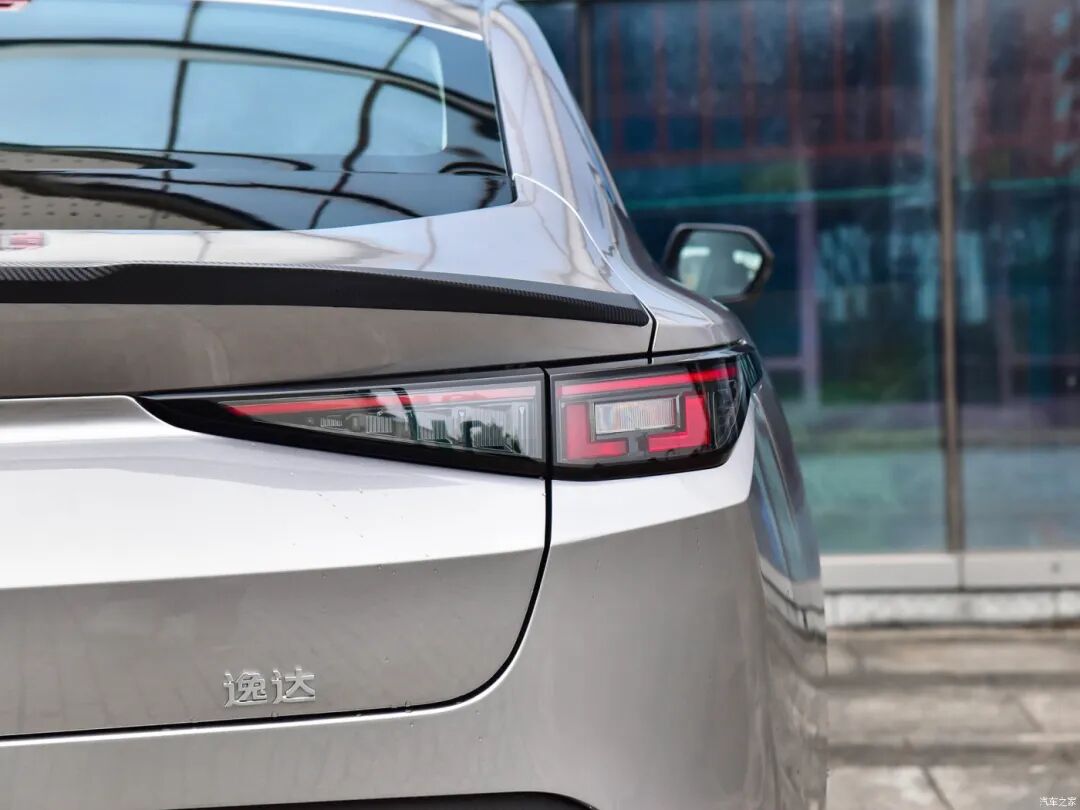长安逸达侧面协调流畅,视觉效果出众。隐藏式门把手如今常见,侧裙的黑色装饰条对提升时尚感大有裨益。近4.8米的车长和近2.8米的轴距让长安逸达拥有了接近中型车的体型,更容易吸引广大“以大为美”的消费者关注。