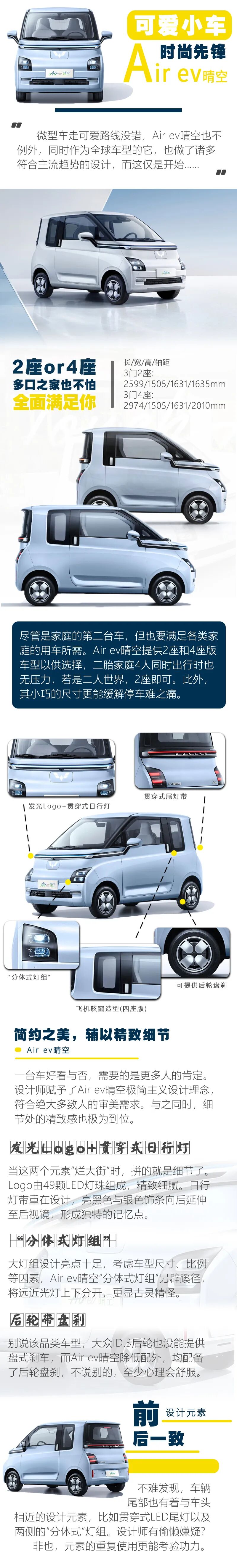 除所见之处够出色外,在看不见的地方,Air ev晴空也不含糊。它是基于GSEV架构的首款全球车,海外市场名为“Air ev”,此前Air ev于8月登陆印尼市场,上市后于9月迅速成为印尼单月销量最高新能源汽车。现阶段已于国内正式完成上市,售价为6.78-8.28万元。未来还将进入印度、埃及等市场。