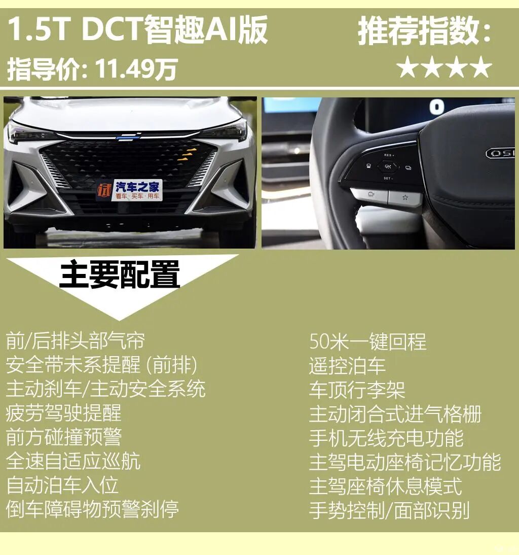 车如其名,智趣AI版的科技感同样是最强的,手势控制/面部识别、自动泊车、50米一键回程以及主动闭合式进气格栅都将它的功能大大得到提升。要知道,这是一款不到12万元的车,在配置方面确实很难让人再挑剔。如果您预算够的话,买它也不亏。