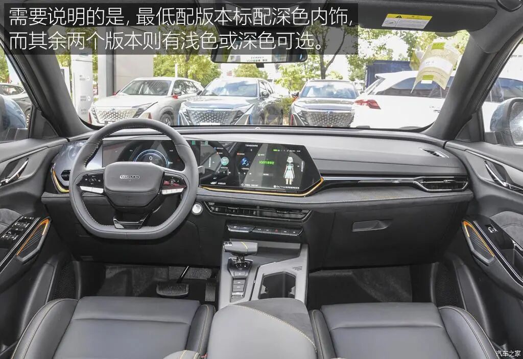 车内部分,欧尚X5 PLUS提供两种配色风格,分别为时尚活力款和熏黑运动款,前者增加了亮色装饰,而后者大面积采用黑色。需要说明的是,先锋型默认深色内饰,卓越型和智趣AI版则有两种可选。