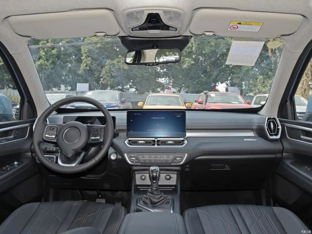 金刚炮的内饰设计理念和外观相同,大量平直的线条令中控台更具层次感,此外在配色上,提供灰红、黑灰、纯黑三种方案,可选性较为丰富。虽然实拍车型未配备全液晶仪表,但数字+屏幕的组合方式也具有一定科技感。