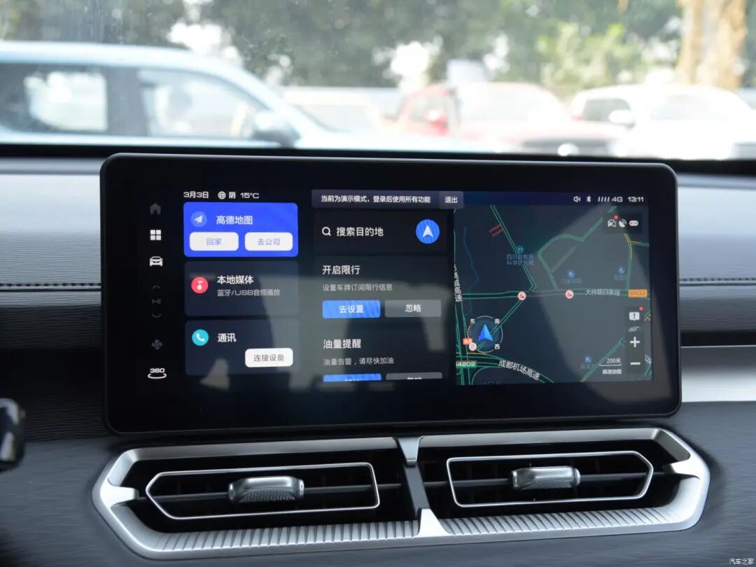 12.3英寸悬浮式中控屏幕为高配车型专属,车机系统支持在线导航、语音控制、第三方音乐等功能,系统响应速度表现也比较出色。
