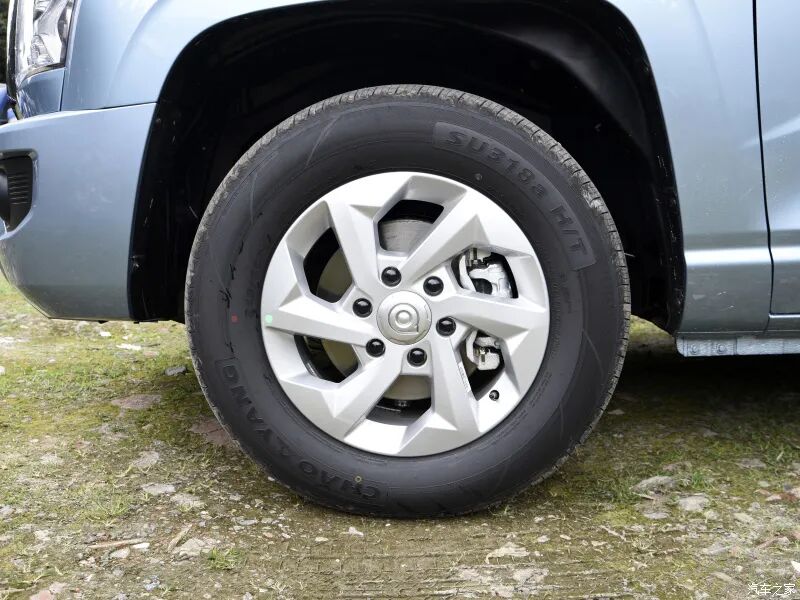 视线来到车侧,标准货箱车型的长/宽/高分别为5365/1880/1815mm,长箱车型的尺寸在此基础上长度增加了270mm,达到了5635mm。在配置上实拍车型提供无钥匙进入功能,17英寸旋风造型铝合金轮圈更显动感。