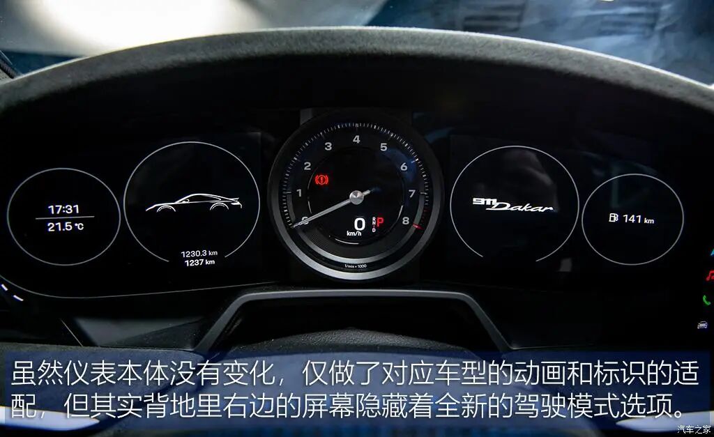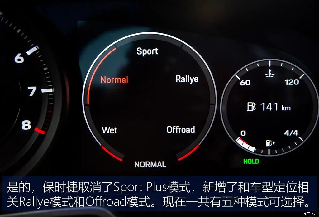 保时捷在这款车上取消了Sport Plus选项,新增了和车型定位相关的Rallye和Offroad模式,现在一共有5种模式可选择。