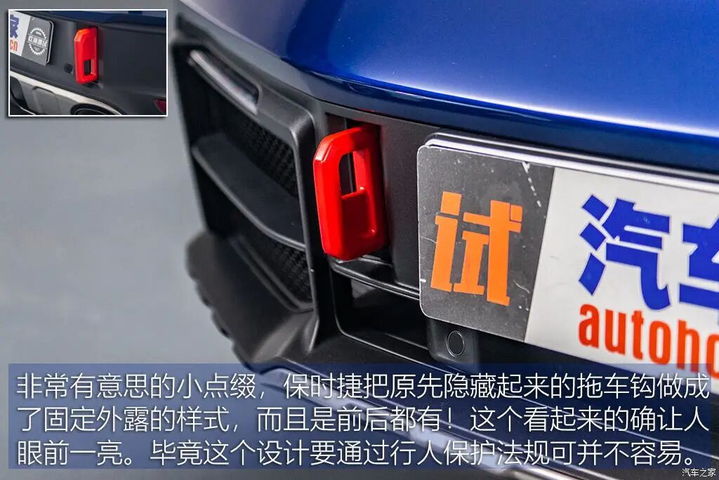 在992 Dakar上,保时捷把原来隐藏的拖车钩改为固定外露式,前后都是如此。这样做显然是更符合越野车的特性,难得的是这个设计同样符合行人保护法。