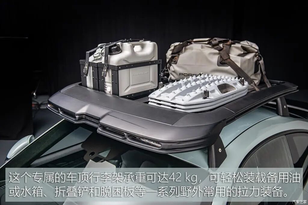 车顶行李架承重可达42kg,可轻松装载备用油、水箱、折叠铲和脱困板等一系列野外常用的拉力装备。