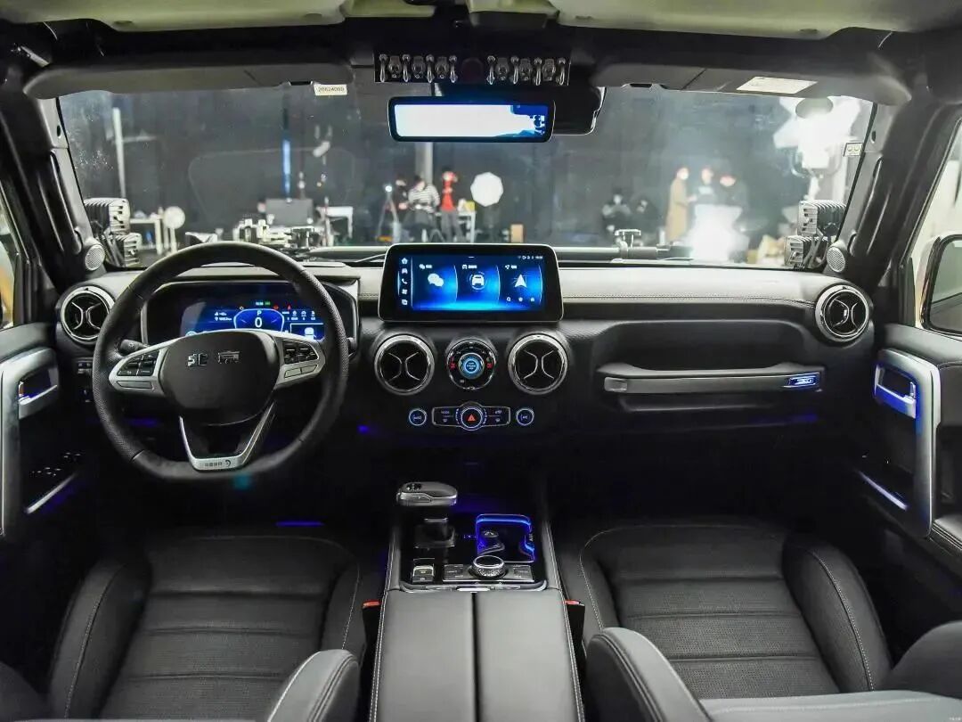 进入车内,前者的内饰设计更显硬派,后者则更注重豪华氛围的营造,整体更显质感。此外,BJ40原厂就在车顶配备了6个独立开关,可以用来控制射灯、绞盘等设备。