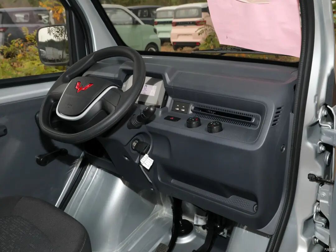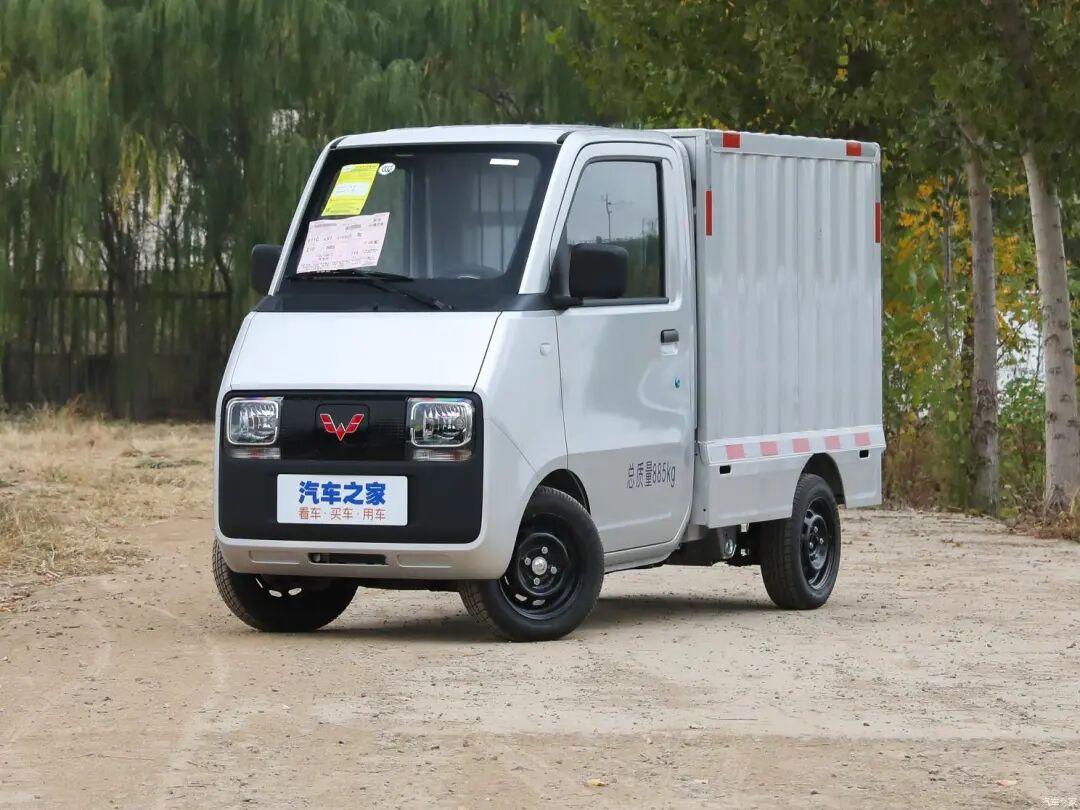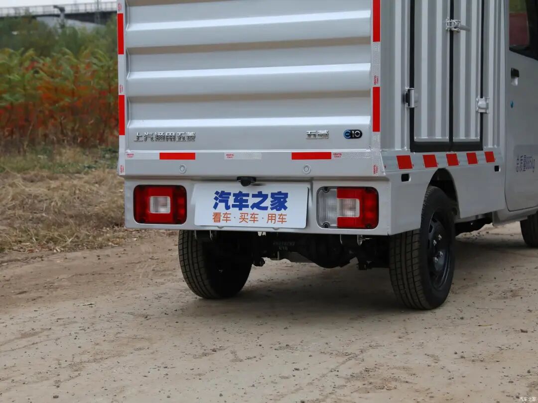 近日,我们在某经销商处拍摄到了五菱汽车旗下五菱E10的实车图。新车作为一款mini电动厢式货车,采用了单排座舱设计,车辆后部为封闭式货箱,目前来看将为顺丰一类的快递服务。