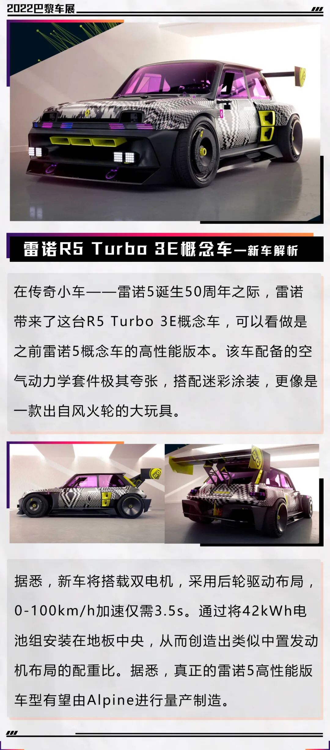 虽然,在本届车展上法系车带来了不少燃油车型,但在电气化浪潮的冲击下,法系车也已经开始“猛踩电门”。例如,雷诺的性能车部门Alpine就将在2025年转型纯电动化,上面介绍的A110 R或许将成为A110车系的绝唱。