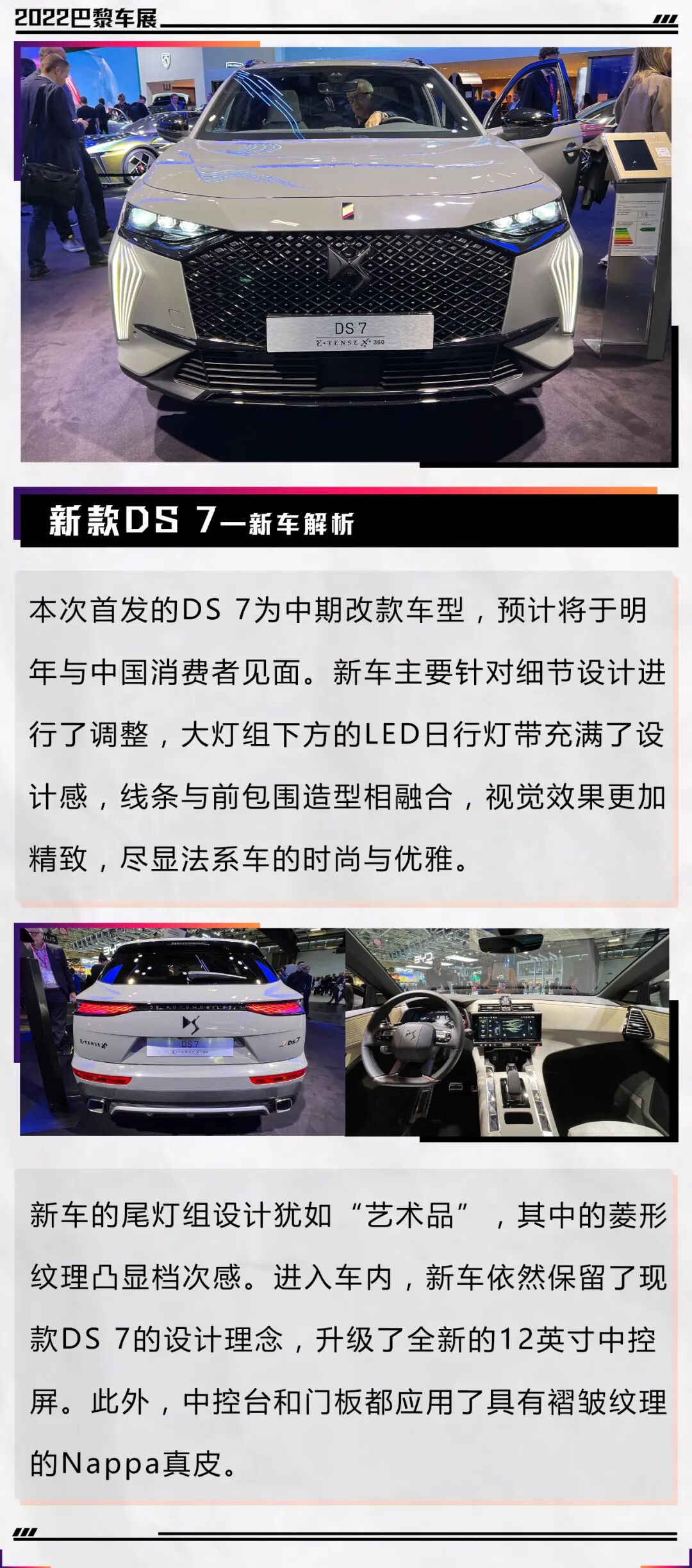 在本届2022巴黎车展,迎来主场作战的法系车,带来了非常多新产品,除了上面重点介绍的车型,DS E-Tense Performance概念车、新款DS 3、新款e-208、雷诺Kangoo电动版、Mobilize Duo等车型也纷纷首发亮相。