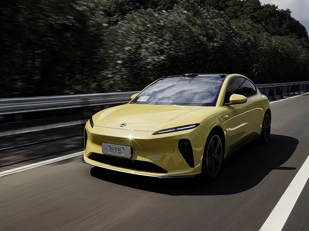 颜值没的挑,它比ET7帅,且更运动,颜色上也很高级,就比如这个黄色,叫云初黄,女生肯定喜欢,男生开它也不违和。