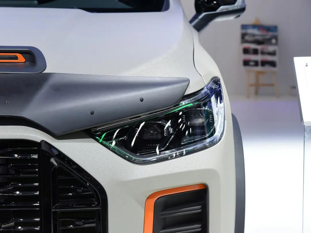 首先就是它这个专属的AT-X防爆装甲漆了,整体呈现出磨砂质感,这让它在户外具备更强的防刮、擦能力,毕竟我们可不想穿越完看到刮痕满满的车身漆面。