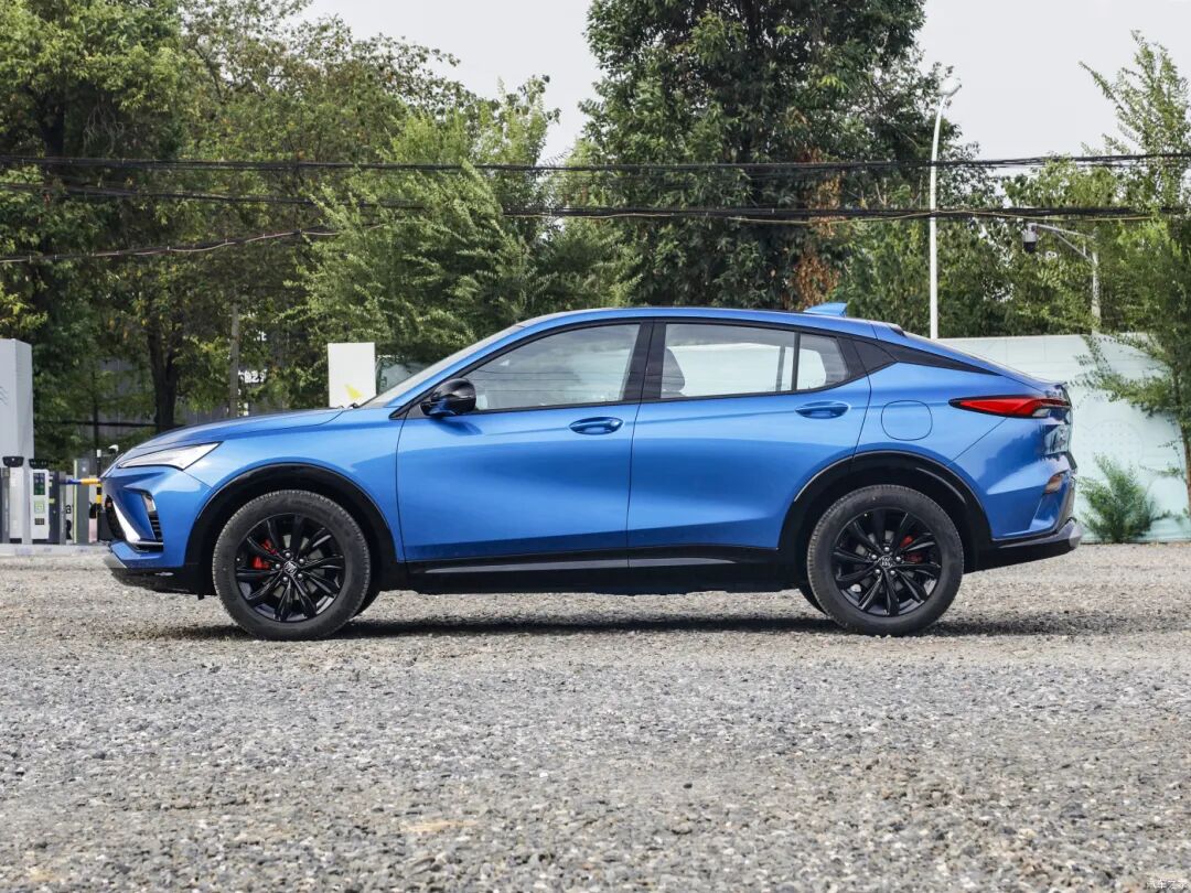 溜背的造型也是昂扬的亮点设计之一,前低后高的车身姿态也勾勒出了俯冲的视觉效果。车身尺寸方面,长宽高分别为4638/1816/1565mm,轴距达到了2700mm。18英寸的黑化轮圈+红色刹车卡钳,运动氛围浓郁。