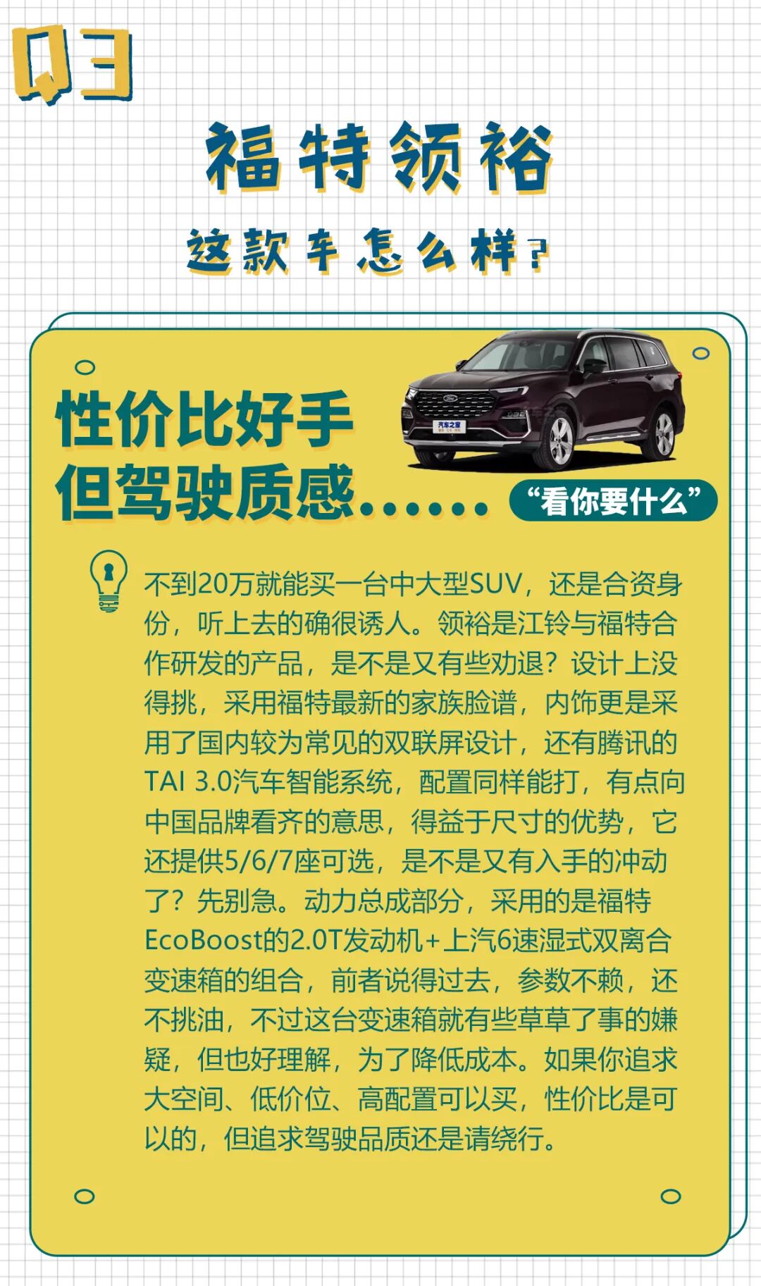 Q3,福特领裕这款车怎么样?价格、尺寸、配置都很有竞争力,但驾乘质感很一般。