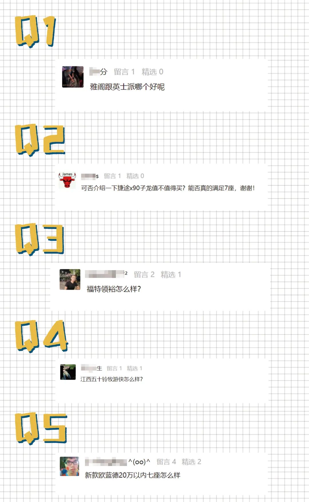 各位看官如有关于购车、用车等一切汽车相关的问题都可以私信或留言给我们,被选中的问题我们会私信告知您,此后会以文字形式集中回答!各位的问题,我们也会开放出来,大家可以一起讨论与回答~