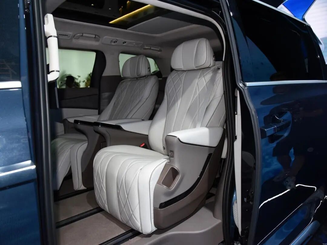 此外,全景天窗、双侧电滑门、电动后备厢、丹拿音响以及一系列科技配置,甚至是全车多层隔音玻璃、128色氛围灯、第二排手动遮阳帘等等,都与高配版相同,这样的表现令人惊喜。完全可以满足商务用车需求,适合更关注第二排体验的消费者。