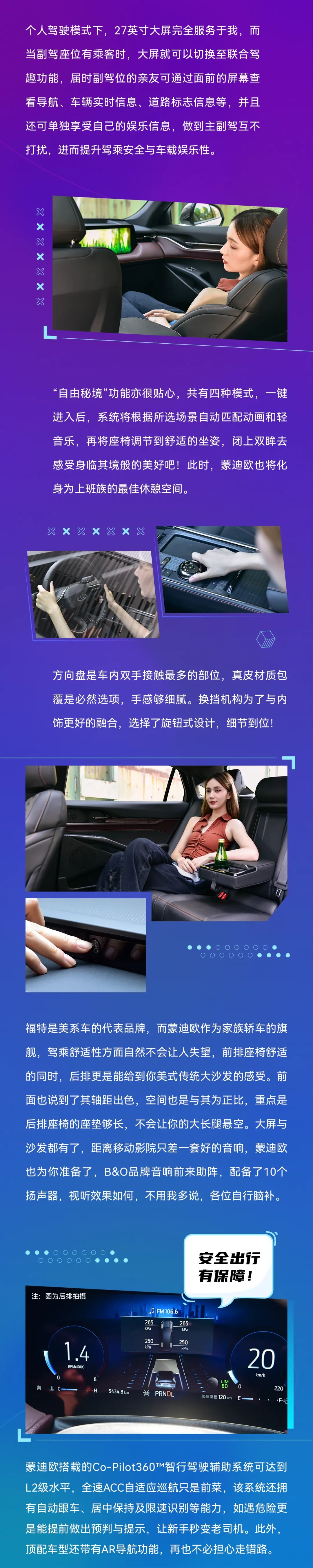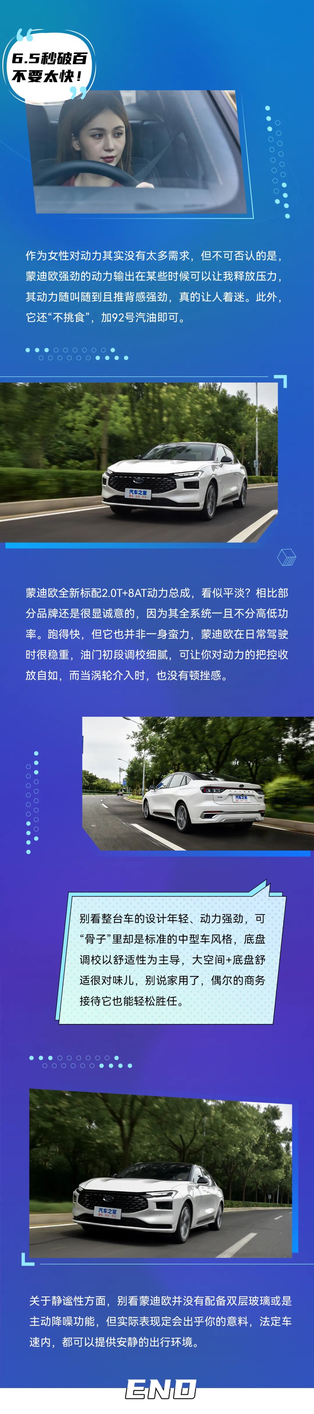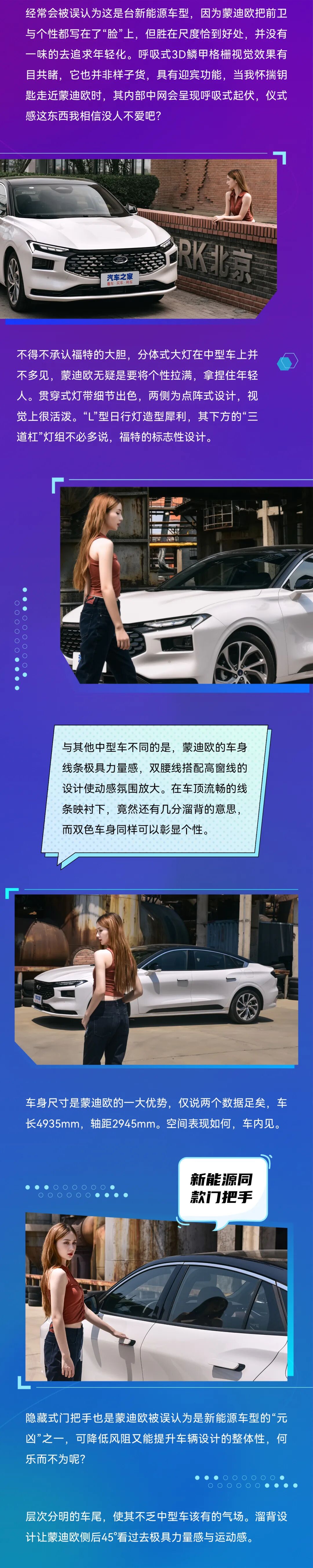 静态部分,外观有新能源车型元素加持,够前卫;车身尺寸、轴距更是将一众老对手甩在身后。来到车内,1.1米长的大联屏甚至不把造车新势力产品放在眼里,这也是它的卖点之一。而配置上,美系车近年来的路数则是强调高性价比,同样的价格之下,蒙迪欧配置要领先于对手不少。驾乘方面,全系2.0T+8AT很显诚意,动力足够充沛,而平顺的动力输出与舒适的底盘调校则是向家用与商用妥协了,这点并非坏事,毕竟连宝马3系都向市场妥协了。综合来看,这位 “老将”的产品力毋庸置疑,在同级别中绝对可位列前茅。