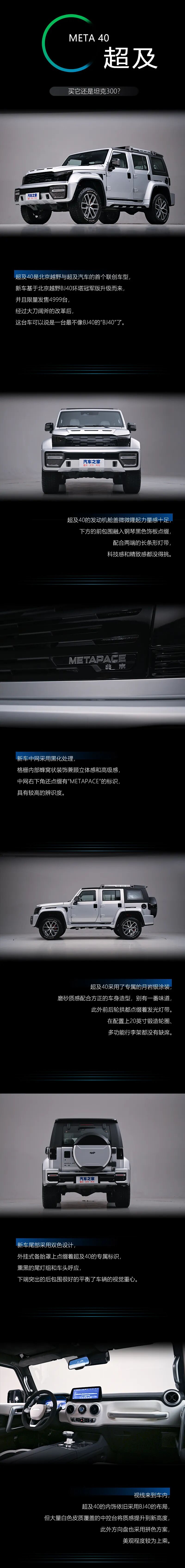 不久前由北京越野和超及汽车联创的首款车型-超及40正式上市,新车限量发售4999台,售价为28万元。超及40基于BJ40环塔冠军版升级而来,如果我不说你很难发现二者的关系,高度原创的外观设计令人过目不忘,内饰设计也别具匠心,本篇文章我们就来近距离解读超及40。