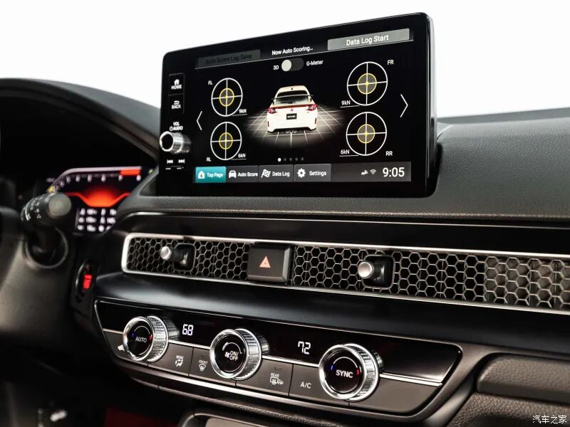 悬浮式中控大屏左侧配备有实体按键,大屏可显示驾驶模式、G值等有关驾驶的各种信息参数。此外,新车还配备了分区自动空调。