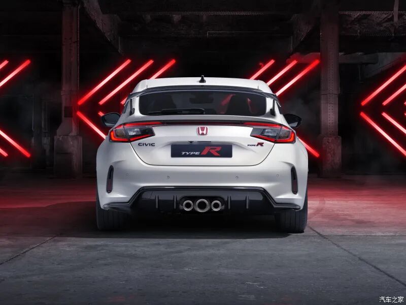 新车尾部相当饱满,尾灯的LED灯带比较醒目,但是转向灯和倒车灯疑似为卤素光源...后雨刷没有缺席,红色本田LOGO和Type R标识在彰显身份。不过最有看点之处还得是硕大的黑色后扰流板和中置三出排气,一眼就能看出其绝非善茬。