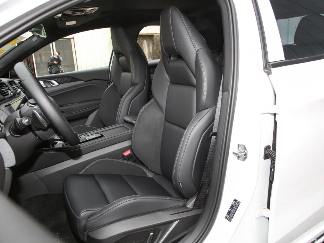 入门车型仍配备一体式的运动风格座椅,但座椅面料采用了更常规的皮革材质,而不是高配车型上的真皮+翻毛皮混搭的材质,触感表现要逊色一些。配置方面,入门车型仅支持主驾驶座8向电动调节功能,座椅加热功能同样要高配车型才会有。