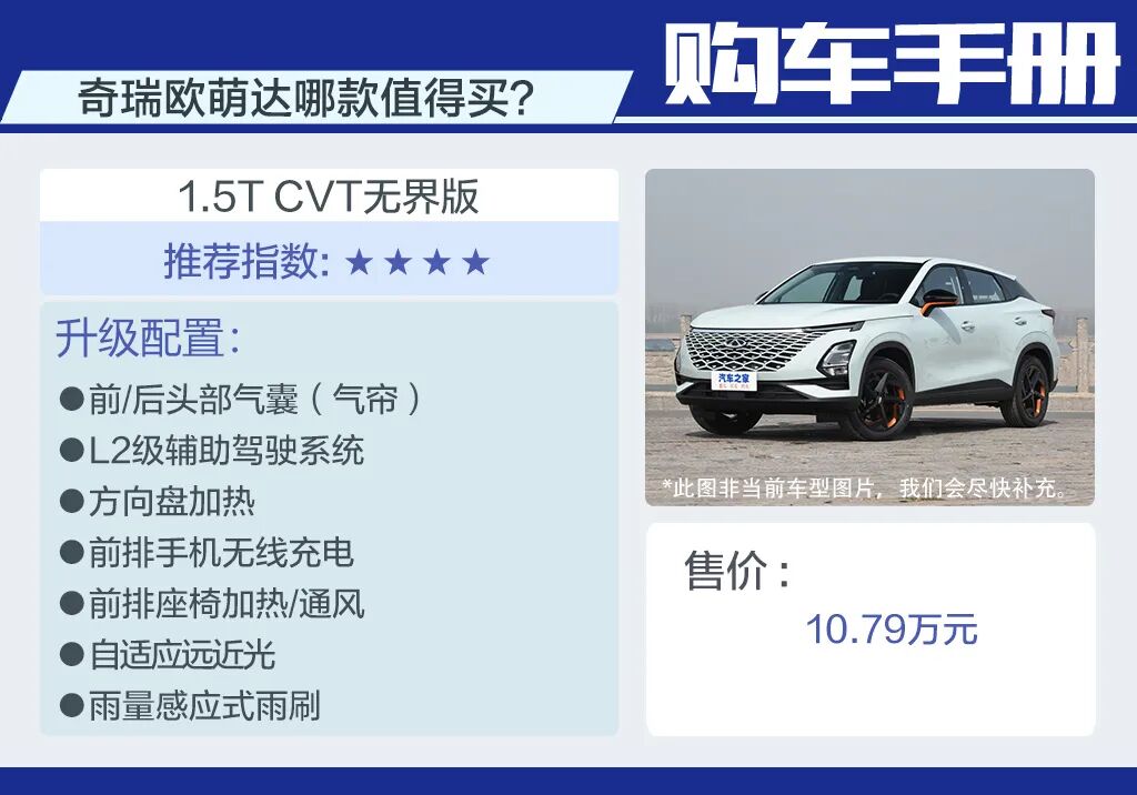 预算再增加6000元,就可以升级到1.5T版本的顶配,无界版最大的提升是加入了L2级驾驶辅助系统,并加入了非常全面的舒适性功能,方向盘加热、前排座椅加热/通风对冬季寒冷地区的消费者也很有吸引力的。