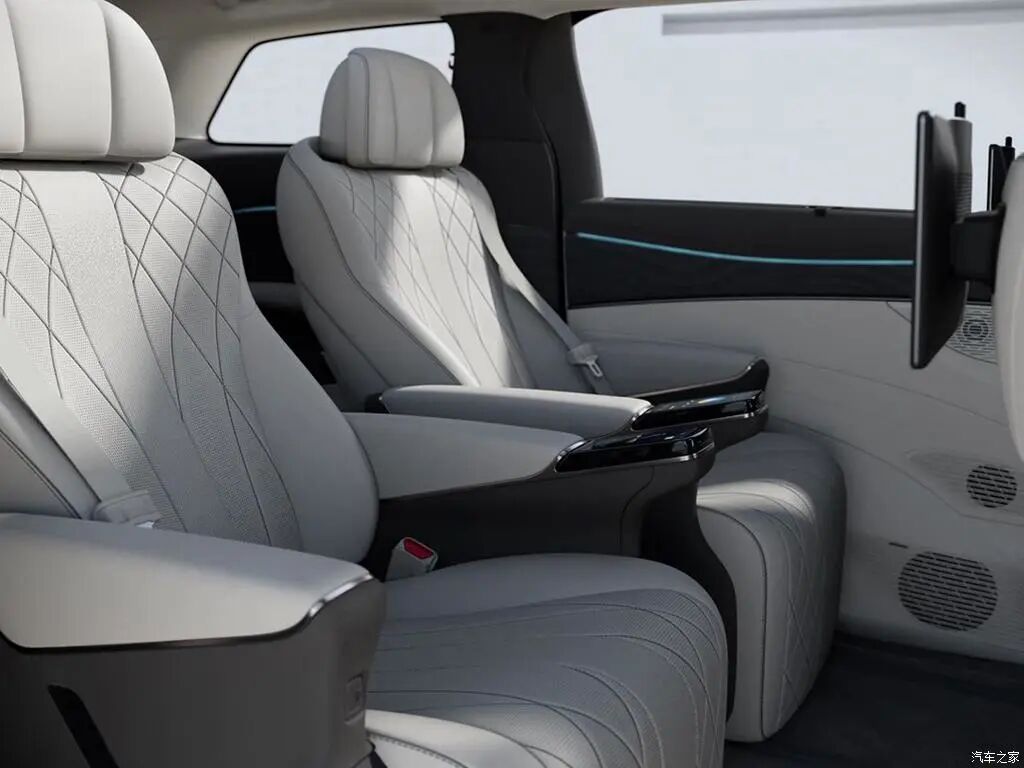 第二排才是MPV的重点,两个独立的座椅能给予乘客“头等舱”般的乘坐体验。配置上全系统一,腰部调节、腿托调节、加热、通风、按摩都安排上了!舒适性方面到位,如此表现,家用、商用都不在话下。
