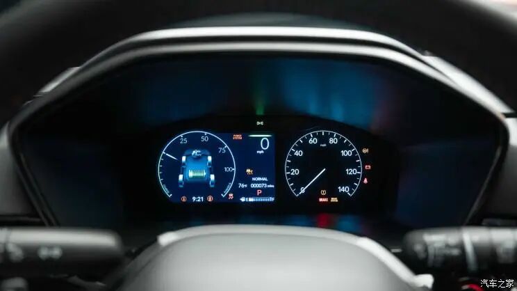 仪表盘采用左侧液晶屏+右侧物理指针的组合,兼顾视觉美感与实用性。液晶显示屏的尺寸为7英寸,且支持切换不同的显示界面,能提供丰富的行车信息。