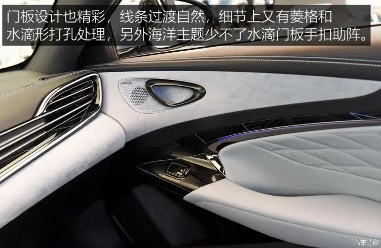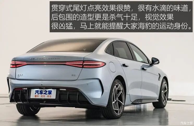 无论是为了降低风阻系数,还是为符合设计潮流,隐藏式门把手都是个必不可少的设计。新车车尾后包围部分的杀气十足,一下将运动氛围提了起来,而贯穿式尾灯的内部光源则像极了水滴,包括新车D柱也有类似水滴的装饰,与“海洋美学”呼应。