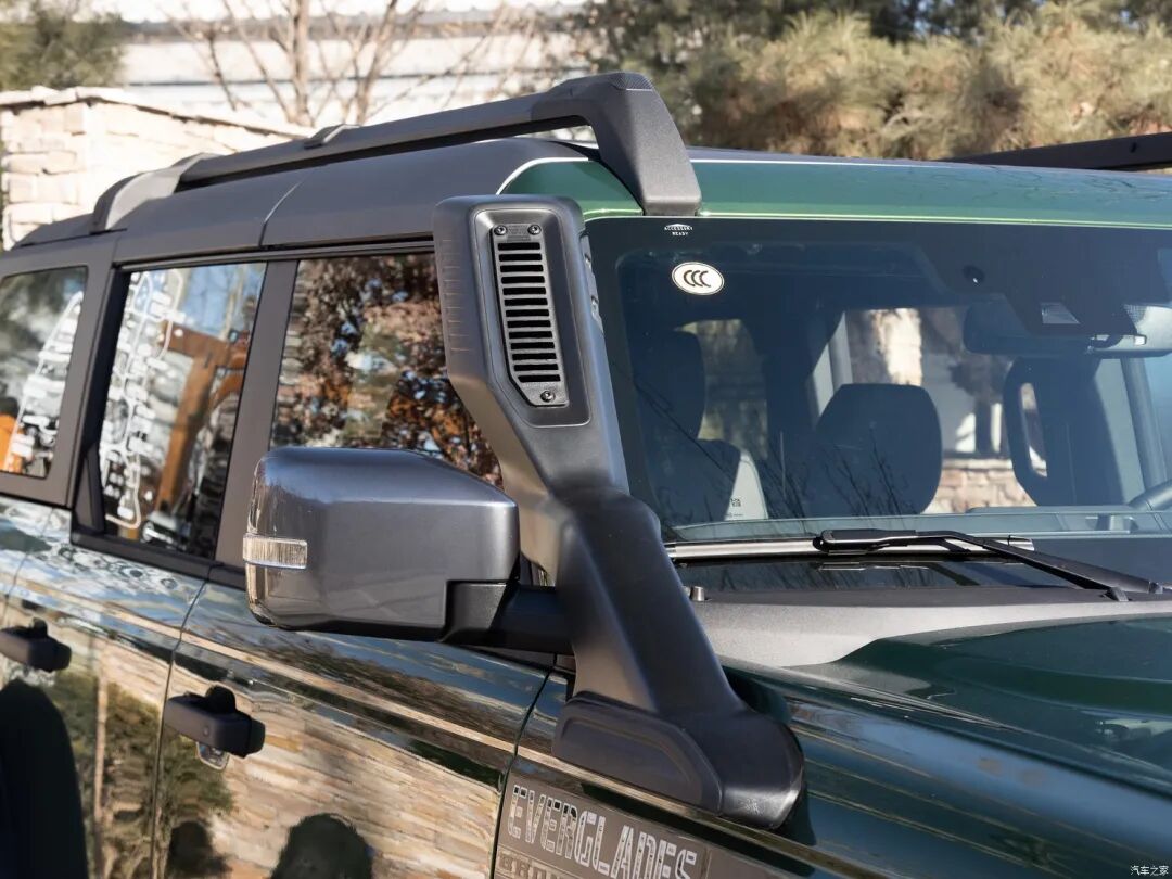 车型尺寸方面,新车长宽高分别为4825/2070/1990mm,轴距为2950mm。普通非大脚版接近角38度,离去角31度,通过角22度,最小离地间隙237/242mm,最大涉水深度800mm。大脚版(荒地/大沼泽地):接近角45度,离去角37度,通过角26度,最小离地间隙273mm,最大涉水深度850mm(带涉水喉925mm)。