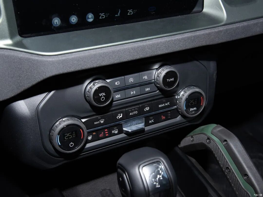 内饰方面,为了迎合国内用户的喜好,新车将配备双12英寸液晶仪表和中控屏,并内置高通骁龙8155高算力芯片。仪表盘可显示专业化的越野信息,中控屏搭载福特SYNC+智行互联系统,具有更丰富的功能拓展性与更好的稳定性,支持CarPlay、语音控制,并支持酷炫的车机效果及动画。
