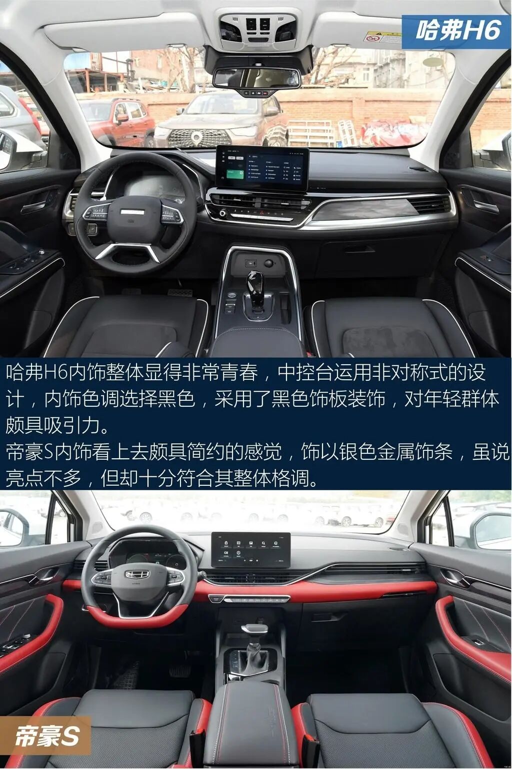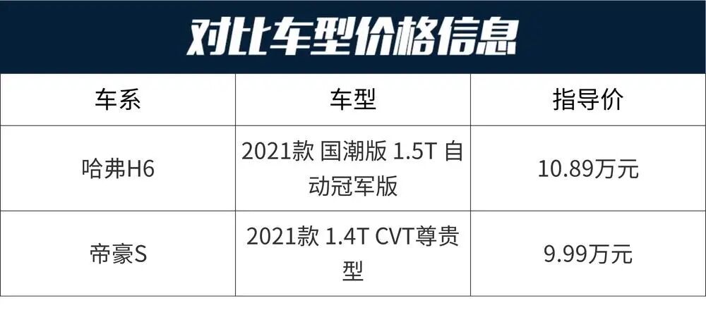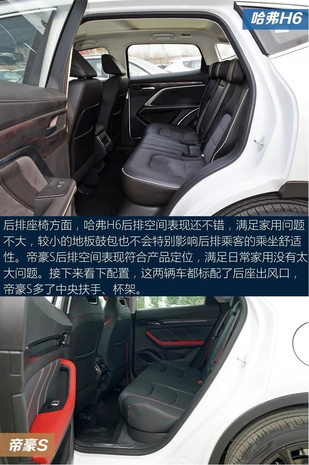 以上就是关于两车的全部内容了,不知道会不会对大家选车有帮助。哈弗H6官方0-100km/h加速是12.4s,指望它带来驾驶的乐趣还是算了吧,日常代步还是OK的。后排座椅方面,后排空间充裕,地板中央虽然存在鼓包,但好在凸起程度不大,对中间乘客还算友好。帝豪S车侧呈现出年轻的设计风格,造型看起来比较时尚个性,显得整车十分有活力。中网运用直瀑式的设计,配合线条大气的车头,给人一种非常简约的感觉,视觉效果很抢眼。这两款车各有各的风格,不知道你会怎么选?