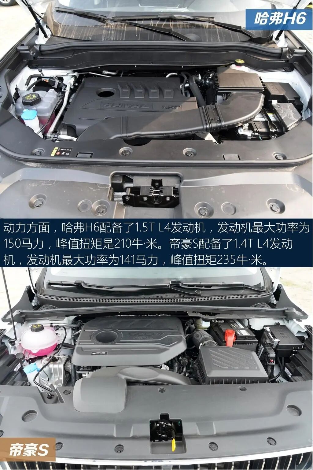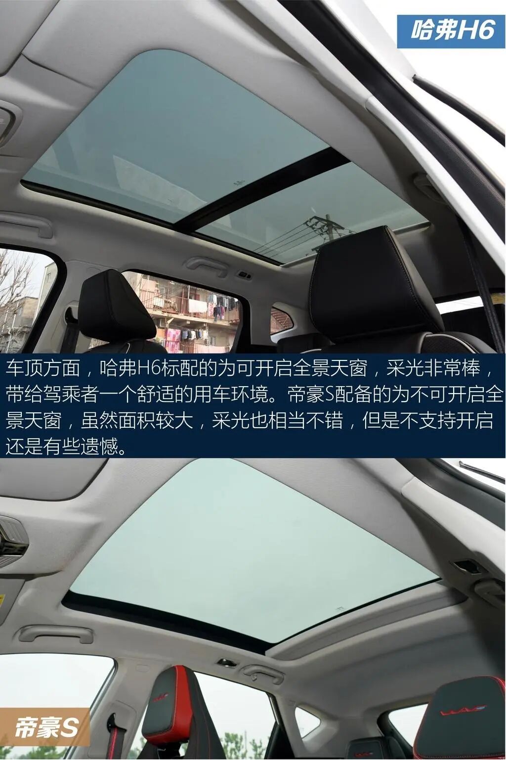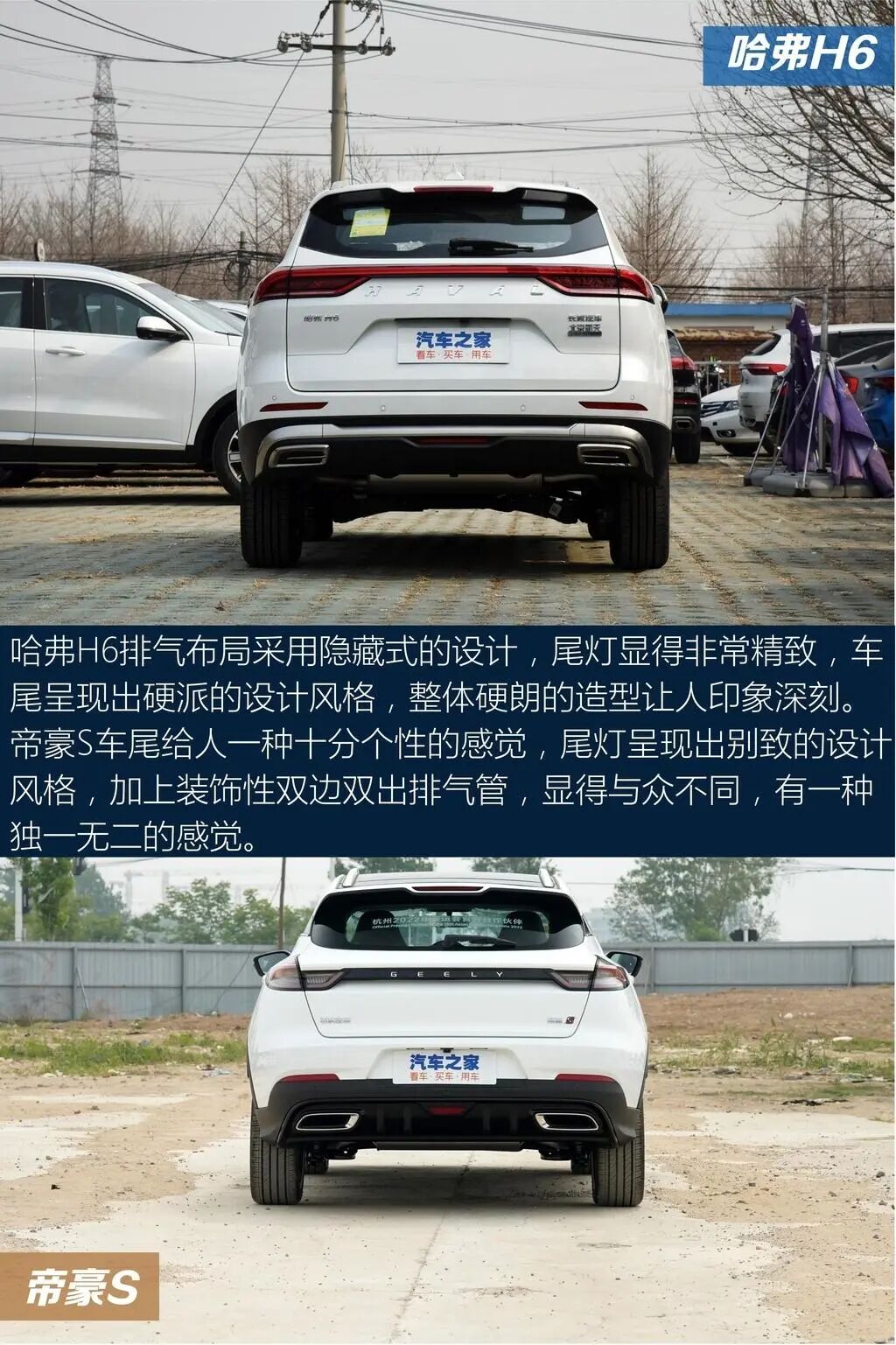 以上就是关于两车的全部内容了,不知道会不会对大家选车有帮助。哈弗H6官方0-100km/h加速是12.4s,指望它带来驾驶的乐趣还是算了吧,日常代步还是OK的。后排座椅方面,后排空间充裕,地板中央虽然存在鼓包,但好在凸起程度不大,对中间乘客还算友好。帝豪S车侧呈现出年轻的设计风格,造型看起来比较时尚个性,显得整车十分有活力。中网运用直瀑式的设计,配合线条大气的车头,给人一种非常简约的感觉,视觉效果很抢眼。这两款车各有各的风格,不知道你会怎么选?