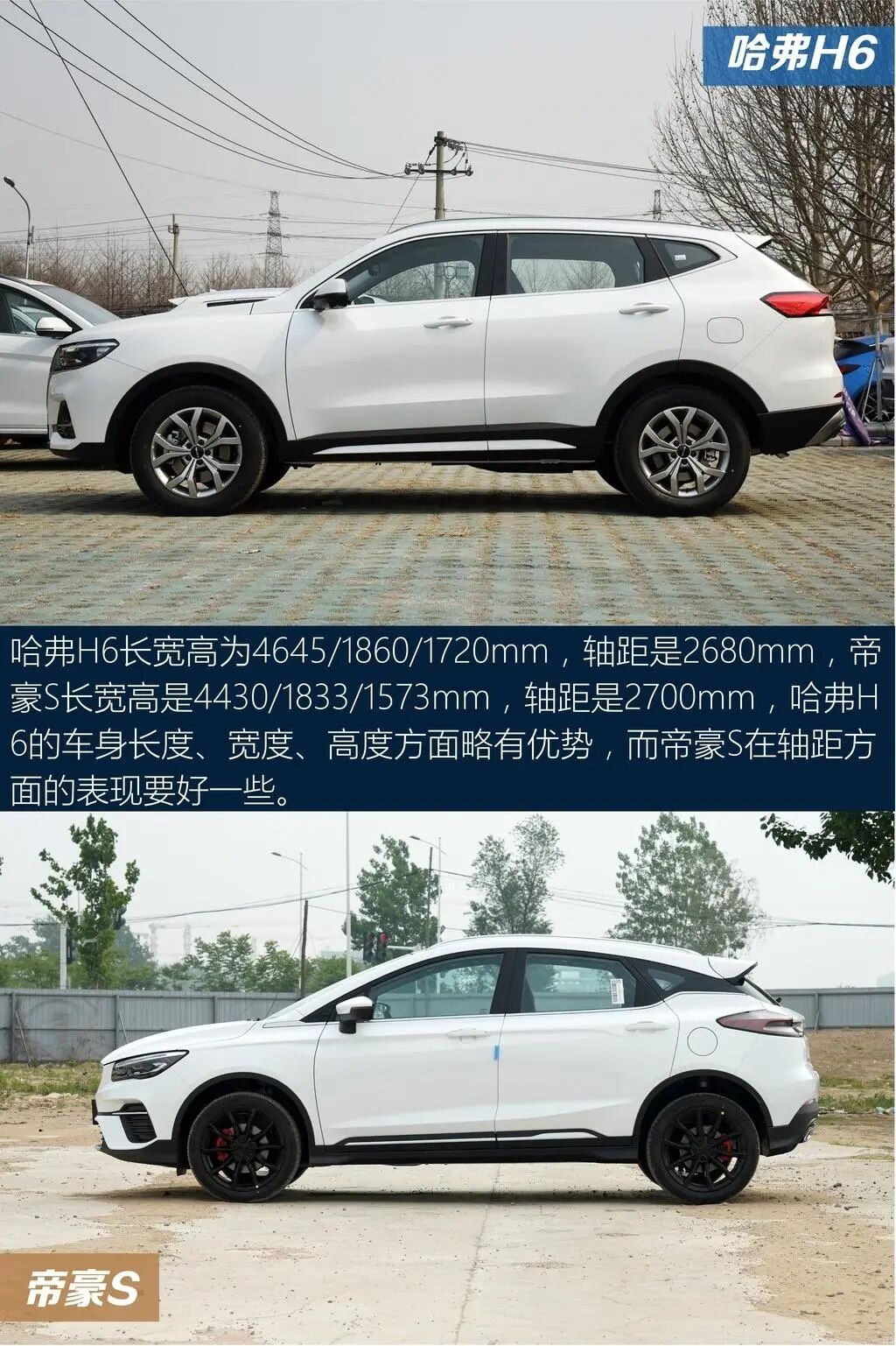 这几年中国汽车品牌的进步大家都是看在眼里的,如今我们的车企已经不单单只做一些性价比出色的车型,哪怕是中高端的产品,我们一样可以进行研发、生产了。特别是不少中国品牌深耕的紧凑型SUV这一细分领域,如今已经有了一系列高品质的车型面向广大消费者了。今天我就为大家推荐两款紧凑型SUV,它们分别是来自哈弗品牌的哈弗H6以及来自吉利汽车品牌的帝豪S,一起来看看这两辆车究竟哪一辆才更适合你吧!
