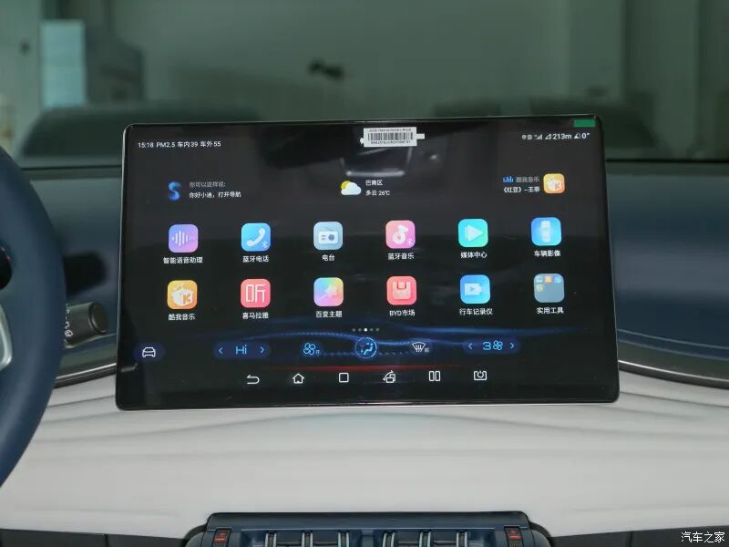 中低配车型搭载的是12.8英寸中控屏,顶配车型配备的是15.6英寸中控屏,搭载DiLink 4.0(4G)智能网联系统,支持自适应旋转、智能语音交互、车联网及OTA升级等功能。顶配车型还拥有Dirac音响、多色律动内饰氛围灯。除最低配车型外,其它车型均配有VTOL移动电站配置。值得一提的是,全系车型均配备K歌车载麦克风。