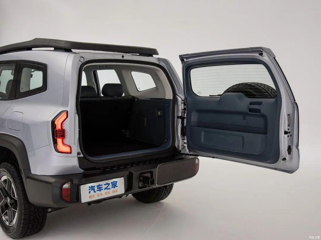 侧开尾门的门板上设置有储物空间,后备厢地板规整度不错,后排座椅靠背支持按比例放倒以扩展空间,最大可扩展至1747L。两侧还设置有悬架高度调节以及220V电源接口。