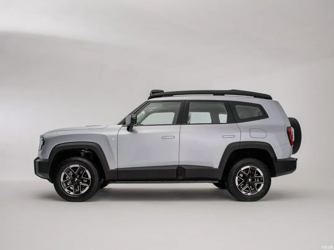 侧面造型饱满大气,A/B/C柱的黑色涂装营造出车顶悬浮的视觉效果。前后轮眉上方都勾勒有硬朗的线条,再加上黑色侧裙看着就有越野车的感觉。