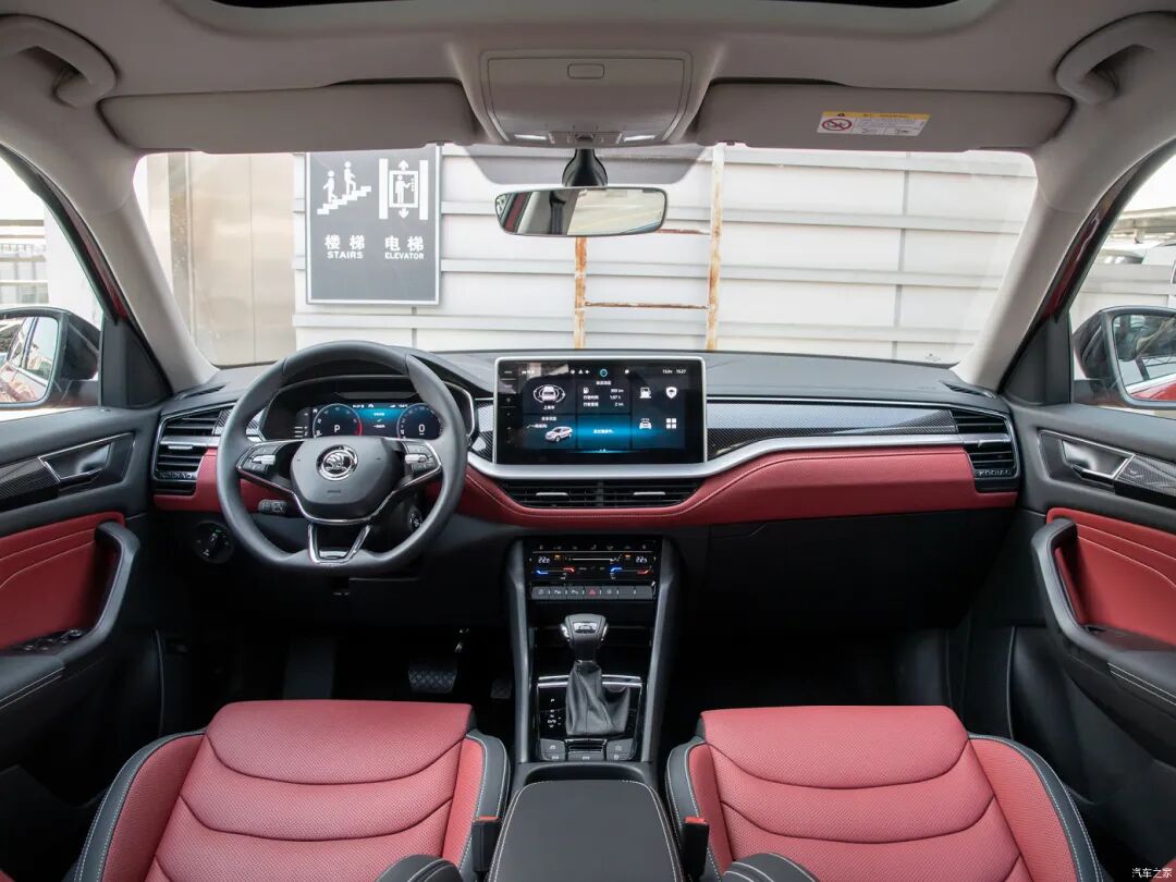 内饰的变化可以说是非常大,T字形中控台相当简约,但很有高级感。车内采用了黑红的双拼颜色,类似碳纤维风格的饰板都是提升运动属性的设计。