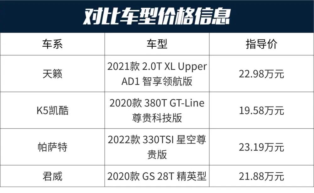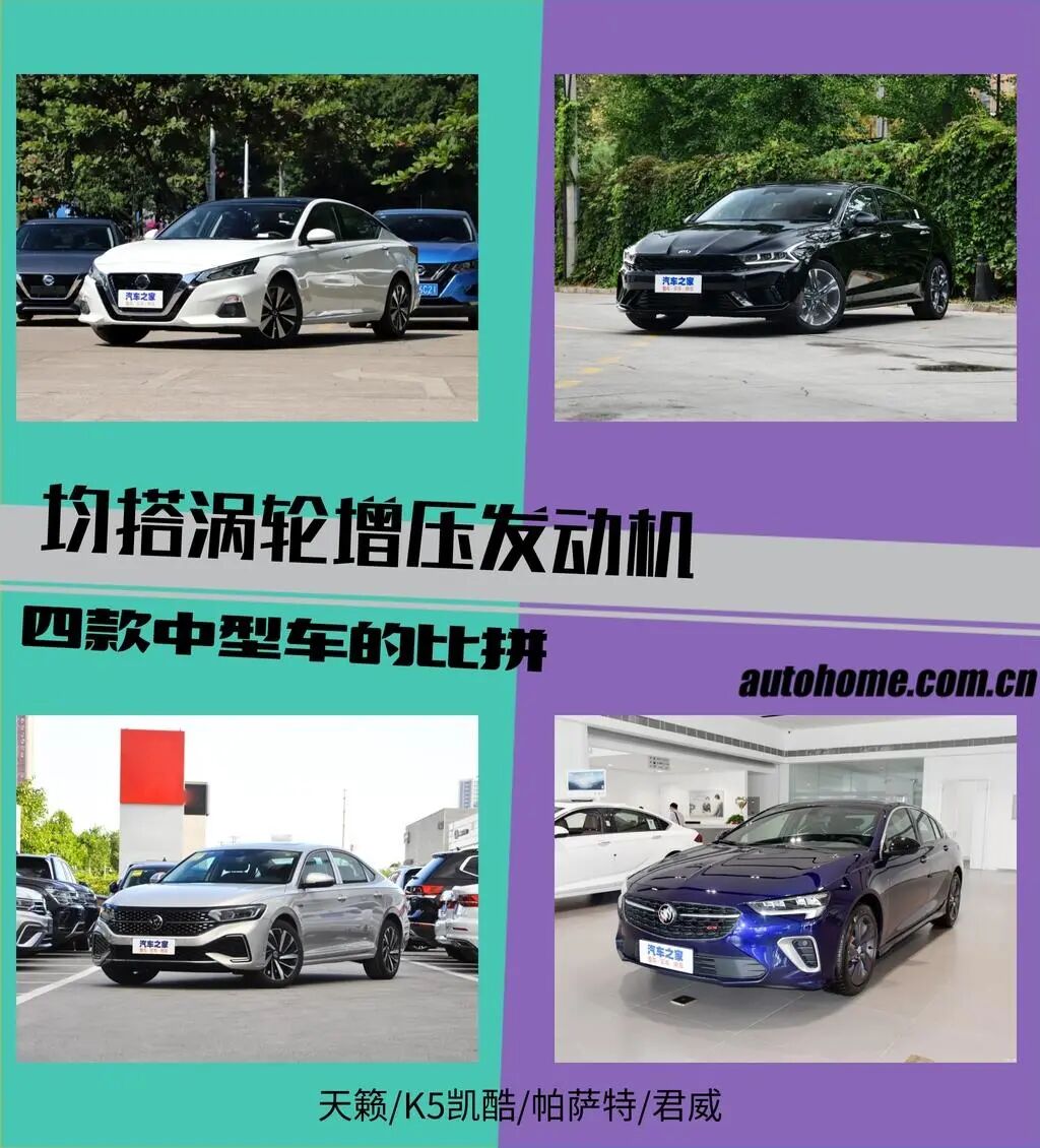 之前写了不少文章给大家推荐该如何选择人生的第一辆车,那么人生的第二辆车该从哪下手呢?我认为中型车是个不错的目标。因为这类车型外观上更加大气,内饰用料也是档次更高,更加细腻,这些因素都能够提高出行的体验。今天为大家带来了天籁、K5凯酷、帕萨特、君威四款中型车,看看它们的表现如何吧。