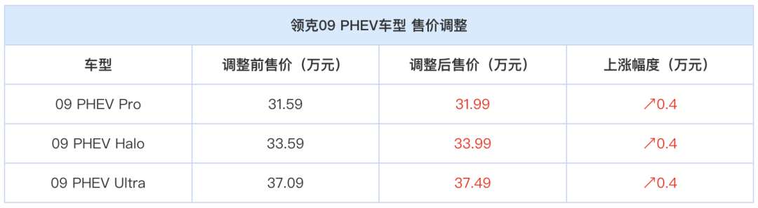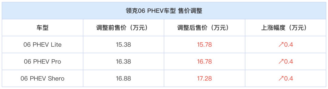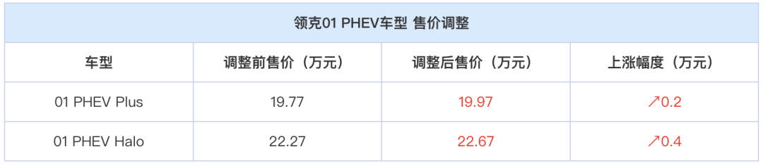品牌/车型:领克01/05/06/09 PHEV调价幅度:2000-4000元生效日期:5月1日
