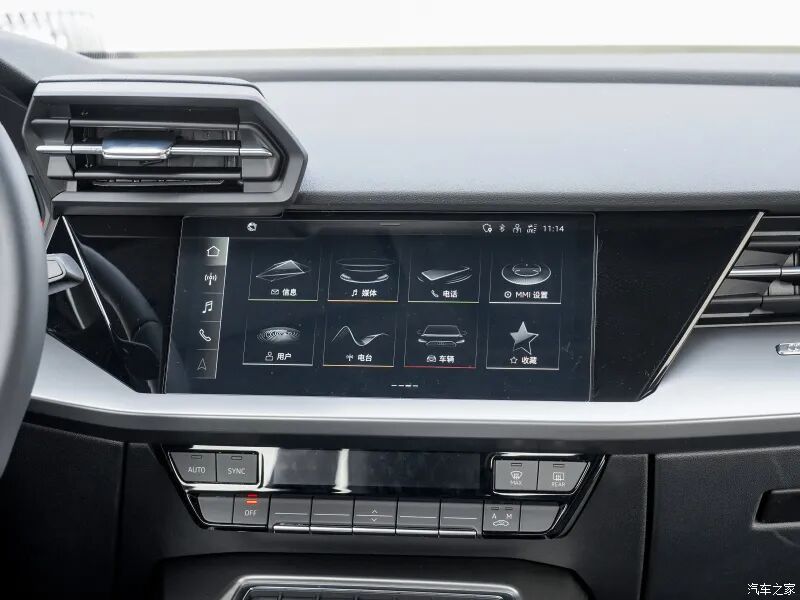 新一代奥迪A3内饰的前卫摩登气息完胜上一代产品,中控台采用不规则造型,仪表盘两侧的空调出风口绝对算是点睛之笔,具有浓郁的战斗气息。真皮多功能方向盘以及换挡拨片均是全系标配,液晶仪表、中控屏以及小巧的电子挡杆同样“不离不弃”,品质感比较出色。