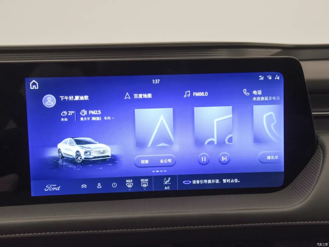 仪表盘的显示效果清晰,且提供丰富的车辆信息,但视觉效果自然不能与高配车型上的12.3英寸全液晶仪表盘相媲美。中控屏在功能性上与高配车型差别不大,支持导航、语音识别、车联网、OTA升级等功能,满足日常使用不在话下。