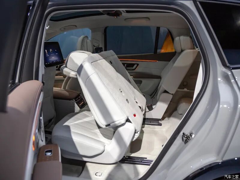 EQS SUV的第三排为两个独立座椅,舒适性如何还有待考证,为便于用户进出第三代,该车第二排座椅标配了EASY-ENTRY方便进出系统,不仅如此其座椅靠背还可前移290毫米。