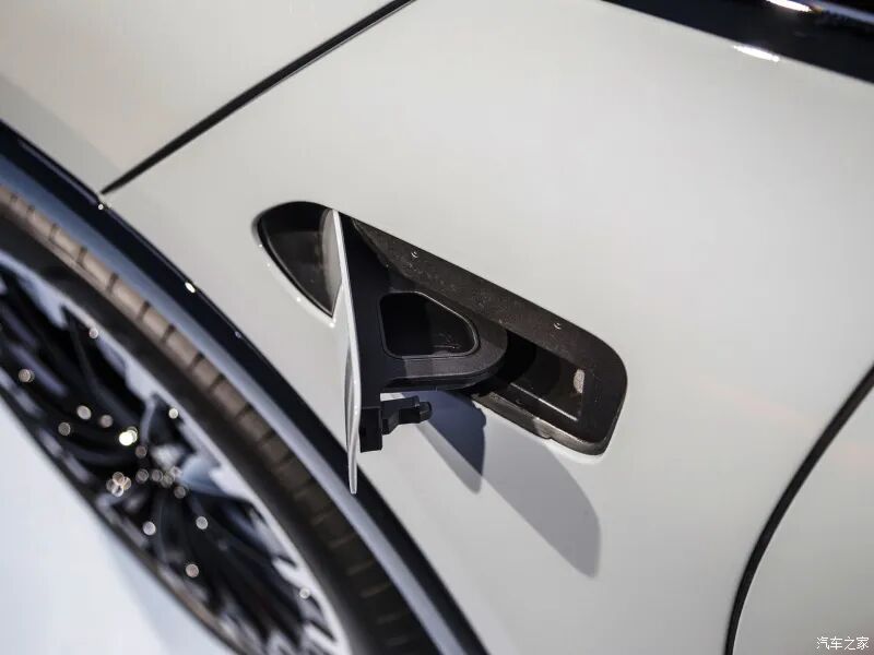 电动车专属的封闭式格栅均匀分布着三叉星徽,由中间巨大的Logo向四周发散,视觉效果非常深邃,为此官方也赋予了其“暗夜星阵称谓”,氛围上也不必多说,豪华就对了!此外,驾驶辅助系统相关传感器,也都集成于此。