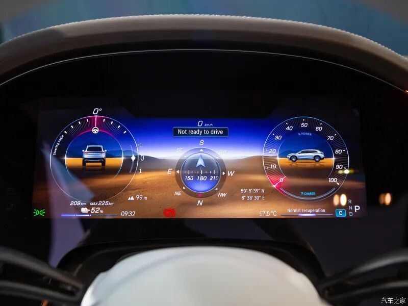 12.3英寸液晶仪表显示效果不亚于时下主流的智能手机,上图界面是EQS SUV专属,为Offroad模式。此外,EQS SUV有两种HUD可供选择,一种是AR-HUD,显示屏的开放角度为水平10°,垂直5°,图像的焦距为10m;另一种是基本HUD,焦距为4.5米。AR-HUD的画面相当于77英寸的显示器,为驾驶辅助和导航信息提供更清楚的内容,让驾驶者充分融入车辆前方的环境,进而提升驾乘安全性。