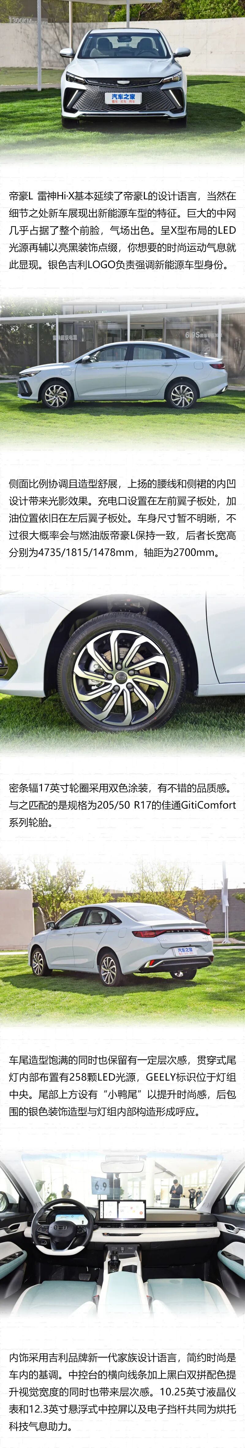 吉利汽车-帝豪L 雷神Hi·X拥有时尚协调的设计,配置表现也达到主流水准,而且从官方数据来看其续航和油耗也有不错的表现,但想要冲击高销量还需要合理的价格。